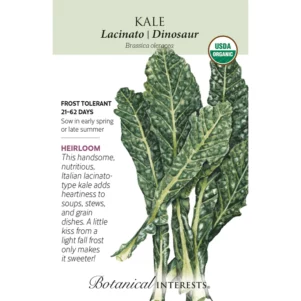 Properly spaced kale plants can yield from spring through fall. They grow up to 20” tall and continuously produce new leaves from a central rosette. Harvest from the outer leaves regularly to promote even more growth. ‘Lacinato’ is a great bolt-resistant kale with vigorous textured leaves. ‘Redbor’ and ‘Dwarf Blue’ are gorgeous, tasty kale varieties that can withstand extreme cold. Frosty weather causes the leaves to accumulate more sugar, sweetening the kale flavor.